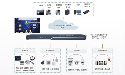 站端監(jiān)控包括各種探測傳感器、數(shù)據(jù)采集單元、無線無源測溫系統(tǒng)、局放在線監(jiān)測系統(tǒng)、門禁系統(tǒng)幾個部分。站端監(jiān)控安裝在配電室實(shí)時監(jiān)測現(xiàn)場實(shí)際環(huán)境狀態(tài)及各項(xiàng)參數(shù)如視頻明火、煙霧、人員非法入侵動物入侵、環(huán)境溫濕度、門禁、空調(diào)狀態(tài)、臭氣含量、開關(guān)柜母排溫度、開關(guān)柜內(nèi)局放等讀取二次電力設(shè)備監(jiān)控系統(tǒng)電量參數(shù)及報警事件信息通過通信網(wǎng)絡(luò)將現(xiàn)場各項(xiàng)參數(shù)及狀態(tài)上傳···